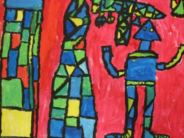 Meine Schüler gestalteten Leinwände inspiriert von Paul Klee. Aus einfachen Formen entstehen farbenfrohe Kunstwerke mit unterschiedlichsten Bildmotiven.