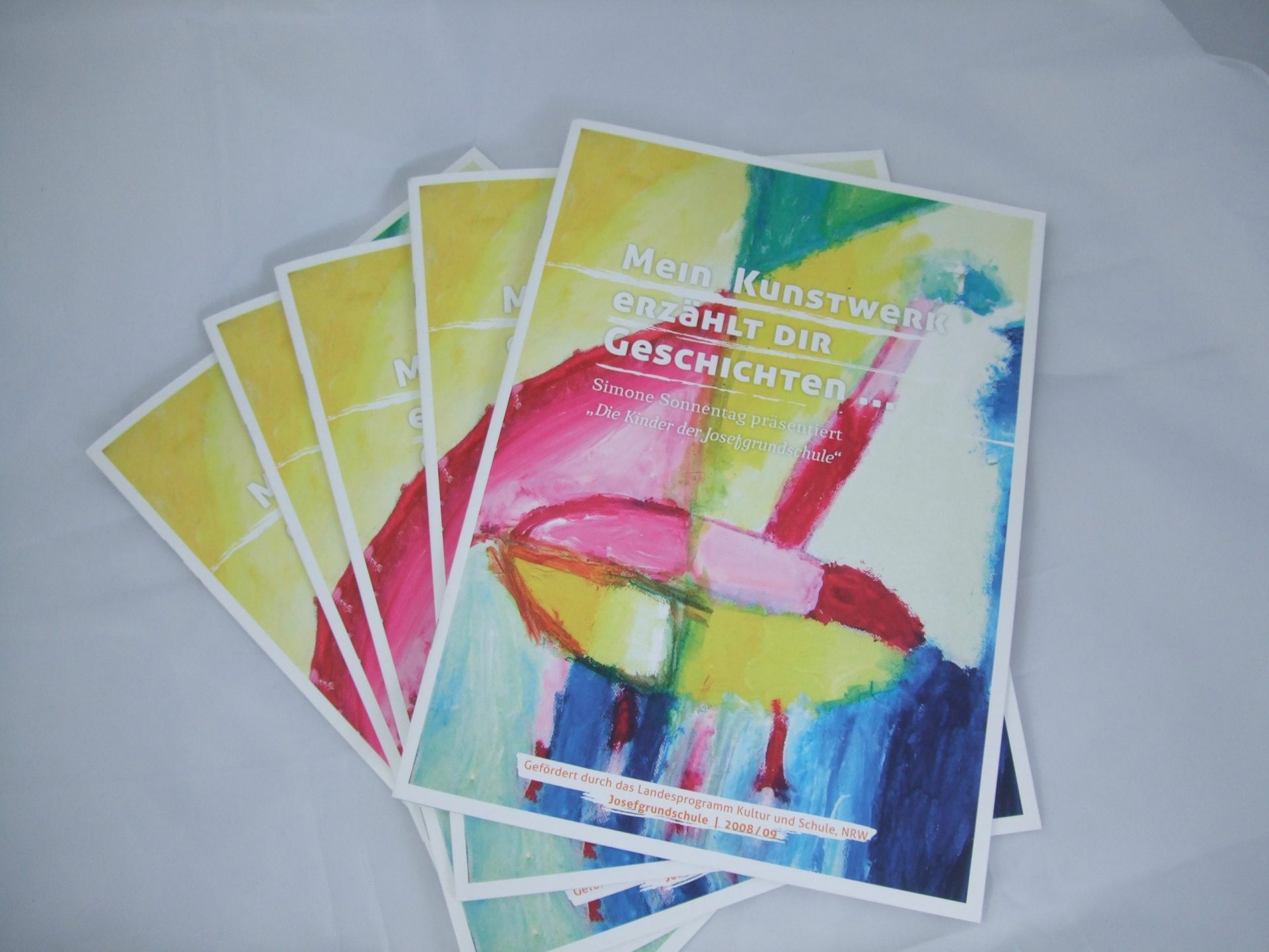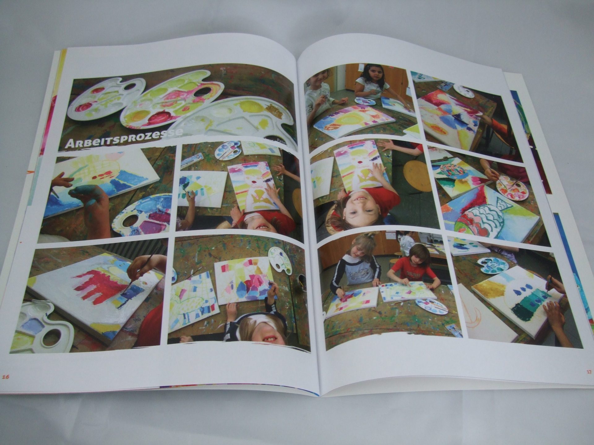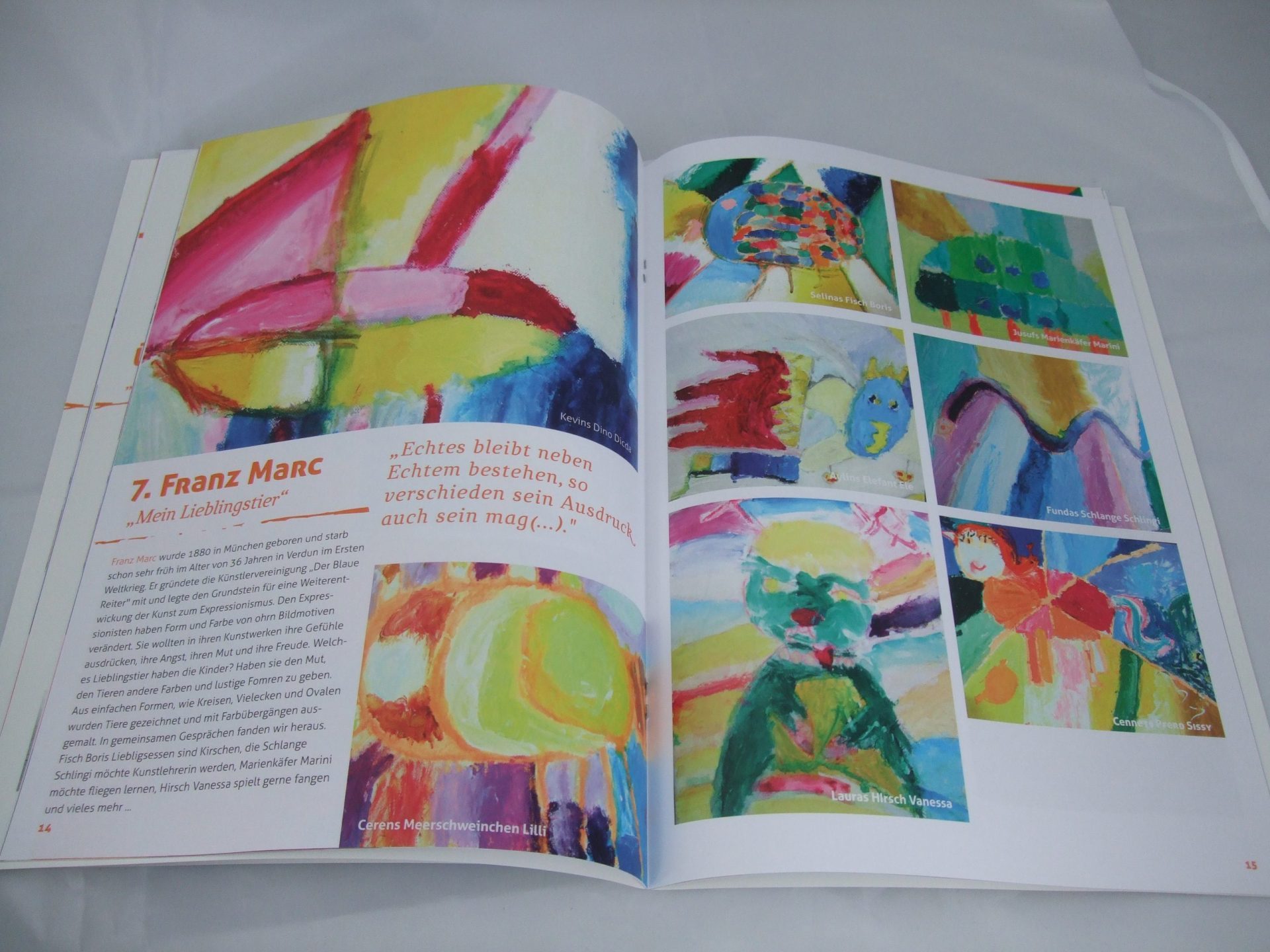 Gefördert durch das Landesprogramm Kultur und Schule entstand 2008/09 diese A4- Broschüre. Sie verdeutlicht und veranschaulicht diverse Kunstprojekte, die mit Schülern zwischen 6 und 10 Jahren in altersgemischten Gruppen durchgeführt wurden. Wunderschöne Ergebnisse aber auch Arbeitsprozesse und Projektbeschreibungen machen diese Broschüre zu einer Inspirationsquelle für Klein und Groß.